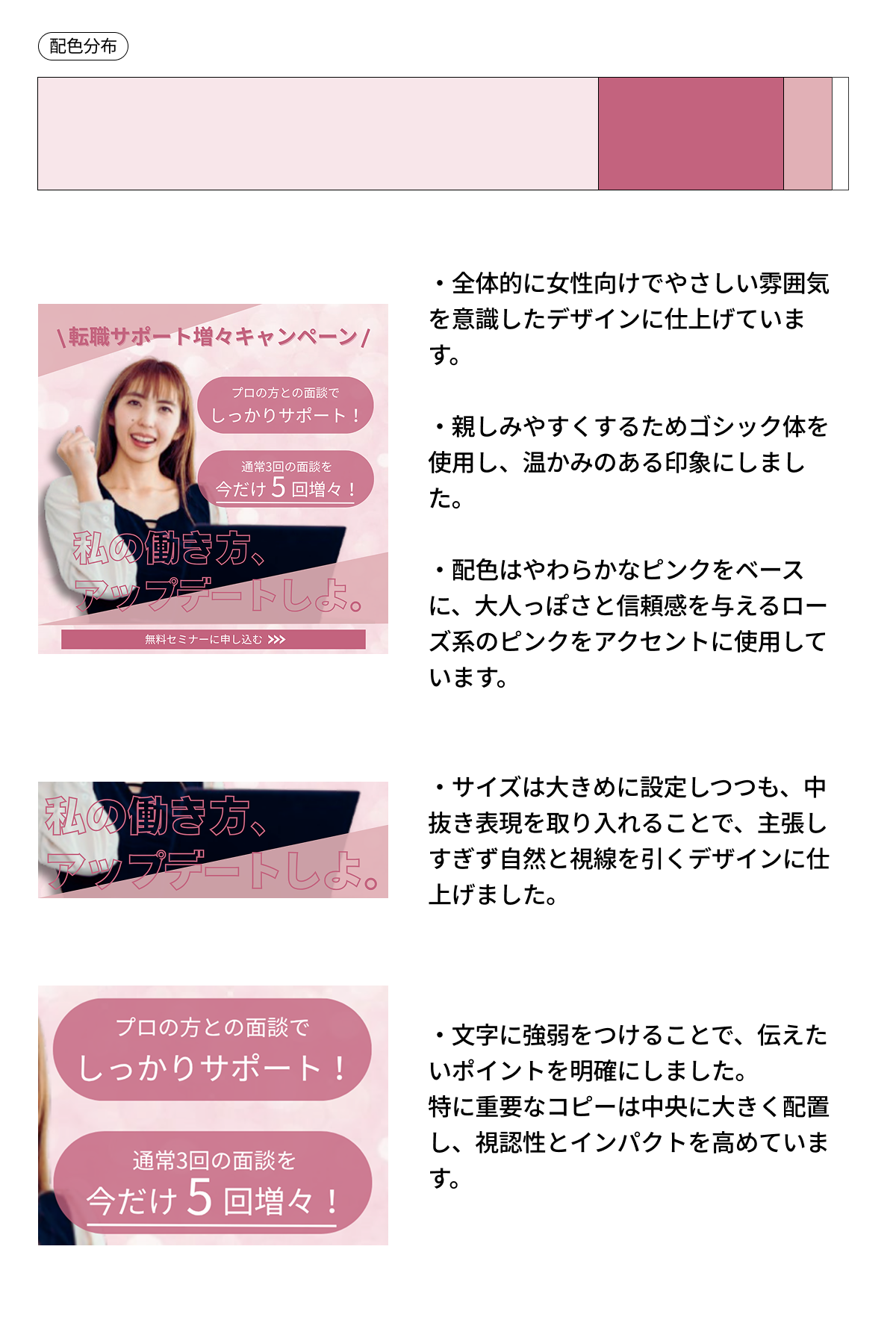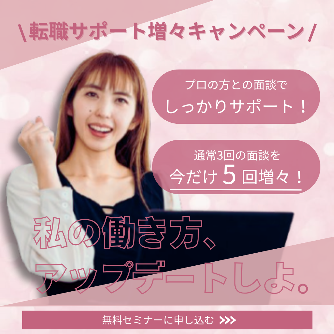転職サポート増々キャンペーンの認知拡大と、セミナー参加の導線づくりを目的としています。