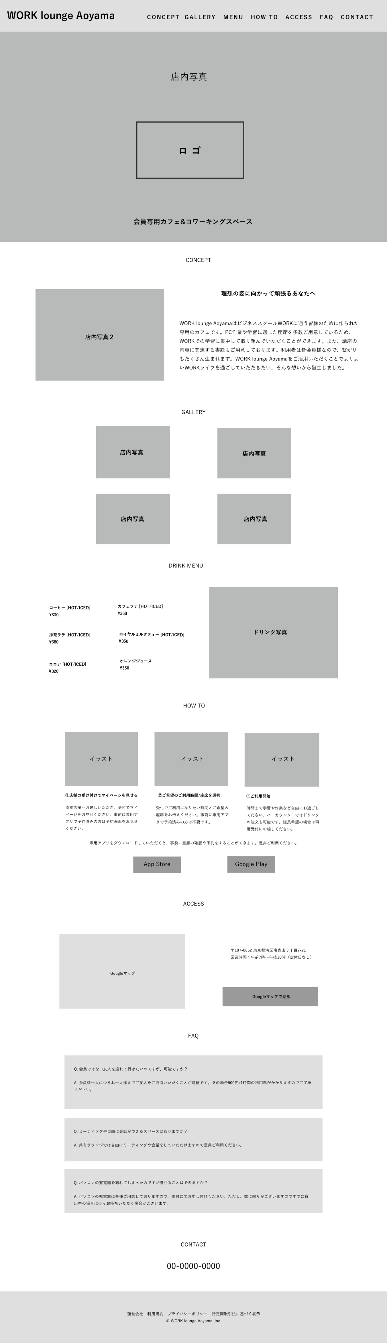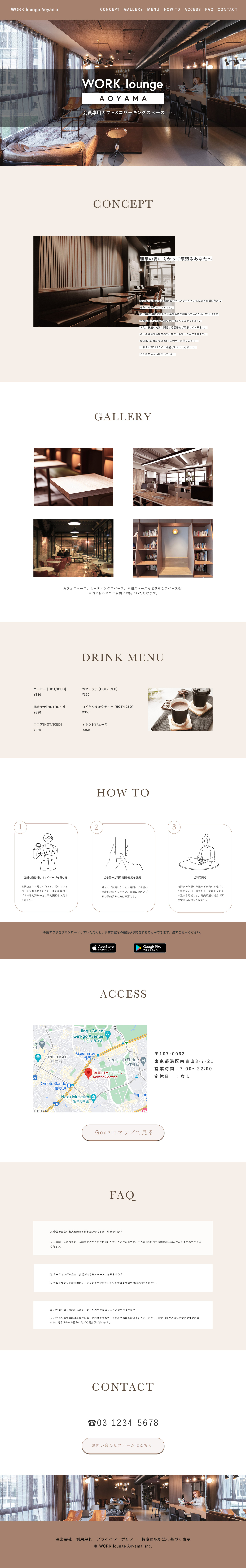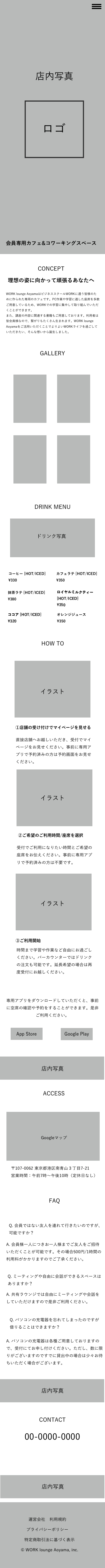 会員様限定のカフェ&コワーキングスペースオープンの告知LPです。 利用方法やアクセス情報を載せたWebサイトを制作しました。