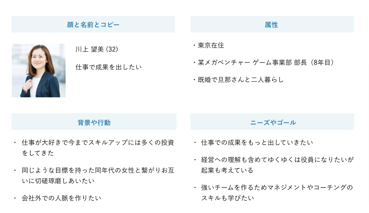 女性向けのビジネススクールを展開しています。会員は20~30代の女性が多く、キャリアアップのためにビ ジネススキルを学び、さらにそのアウトプットの場として定期的にビジネスコンテストなどのイベントも 開催されています。