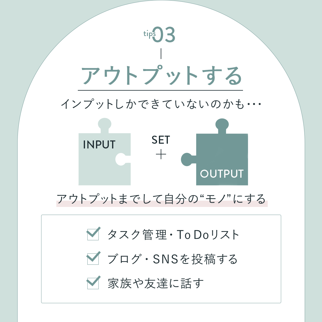 インプットとアウトプットはセットとゆうことをイラストで配置
