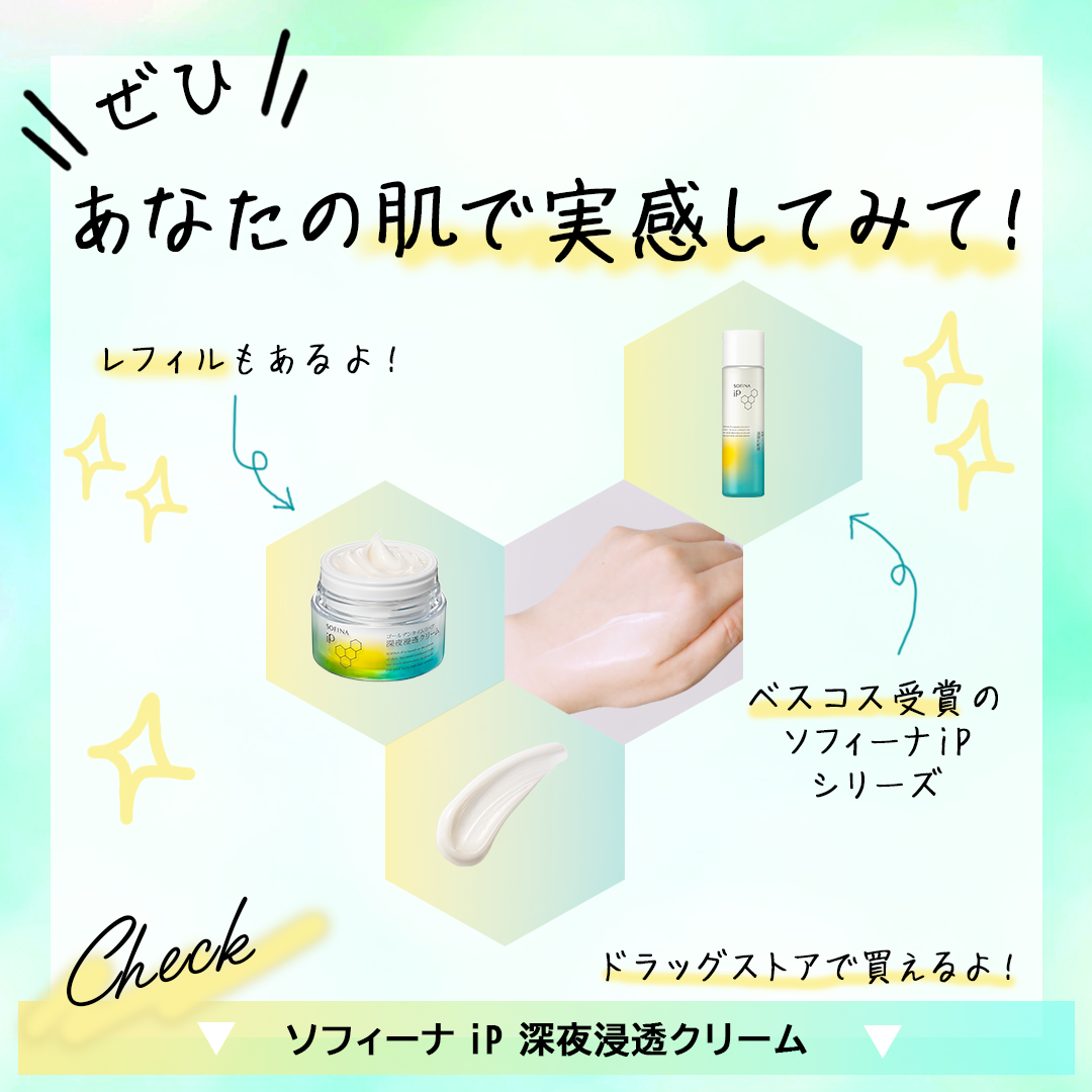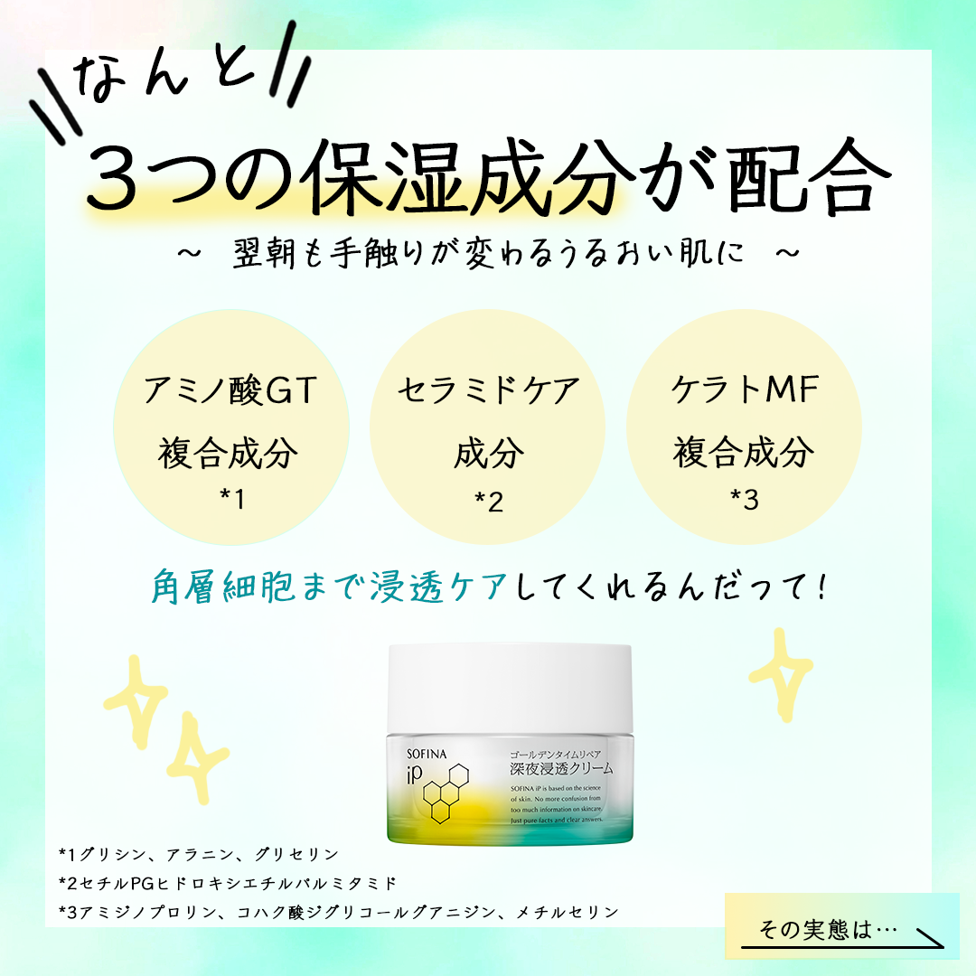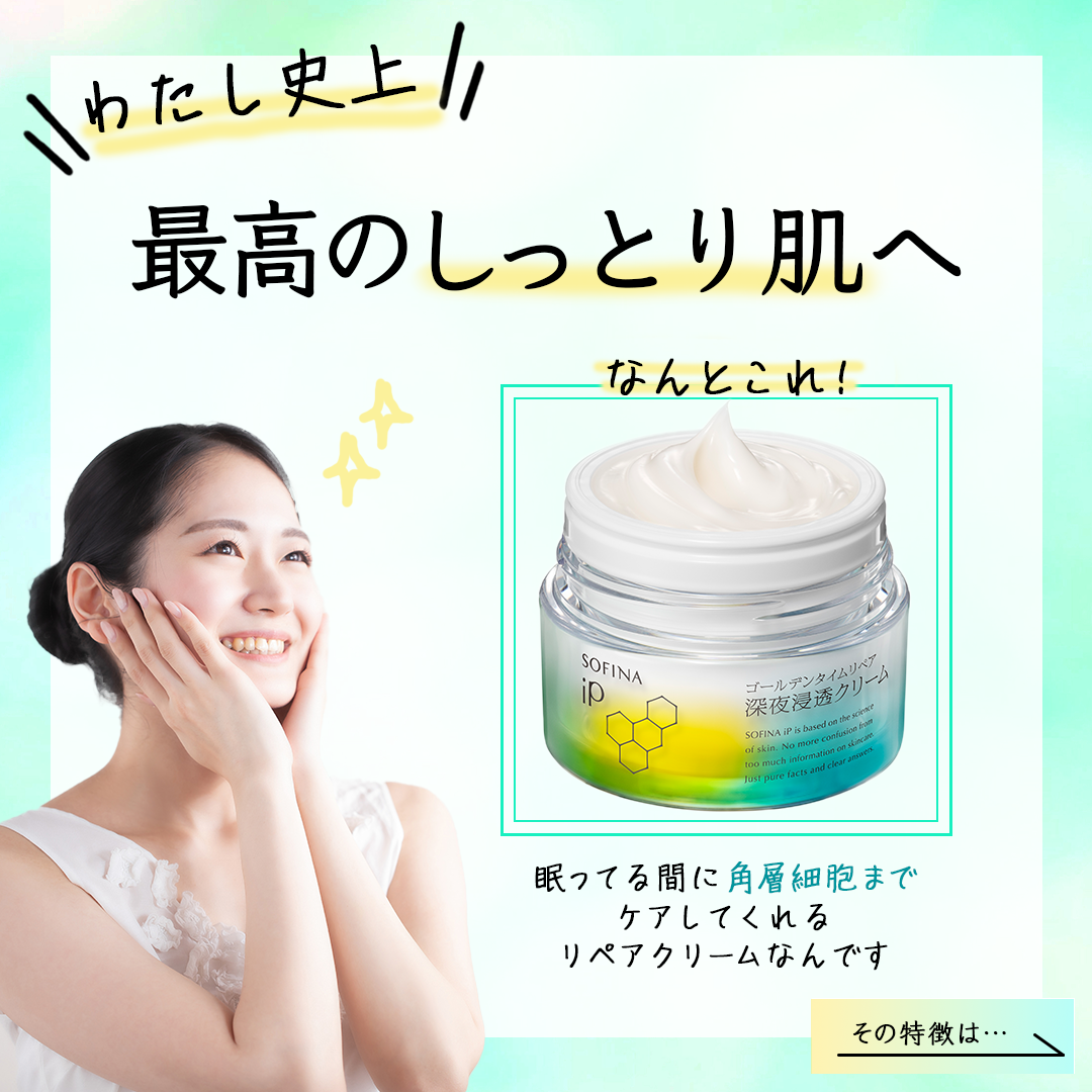 花王 新商品『ソフィーナ iP ゴールデンタイムリペア 深夜浸透クリーム』のSNS広告バナー