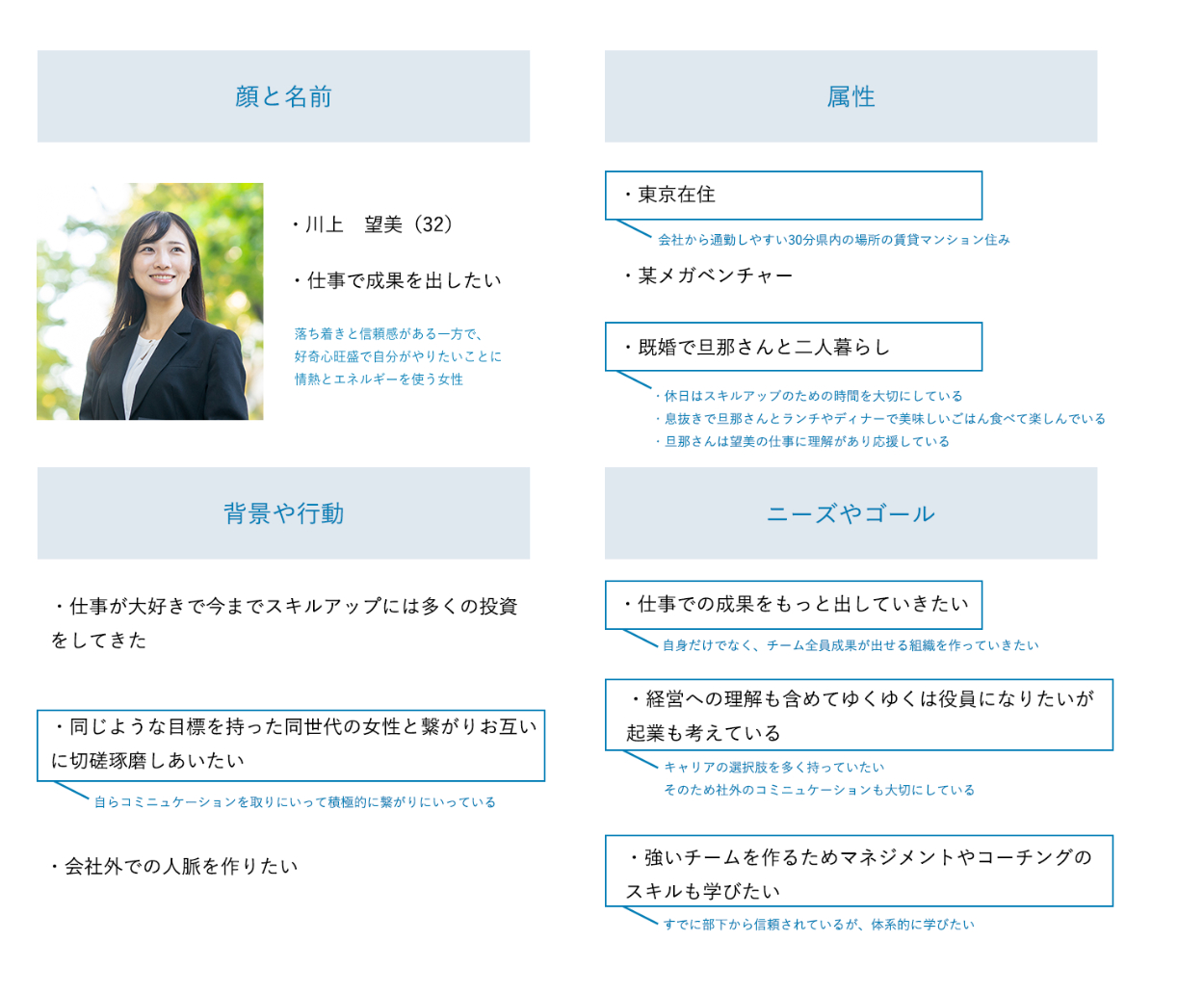 届けたい人に届くように、クライアントから頂いたペルソナをさらに深掘りしました。