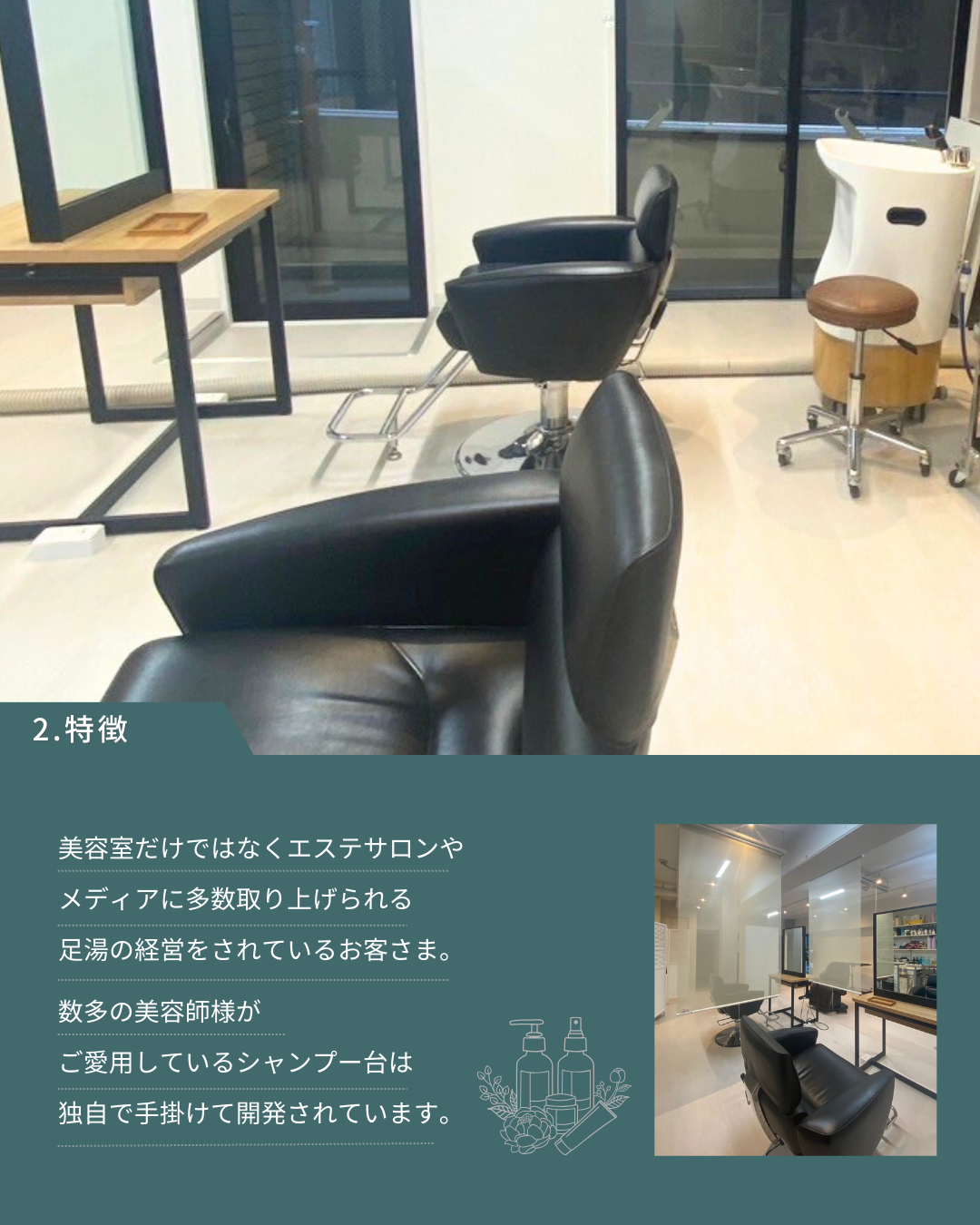 ・店舗の特徴でもあるシャンプー台が見えるように写真を配置しました。