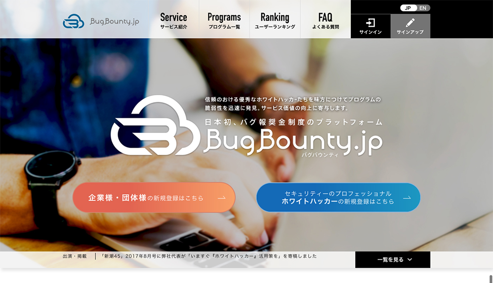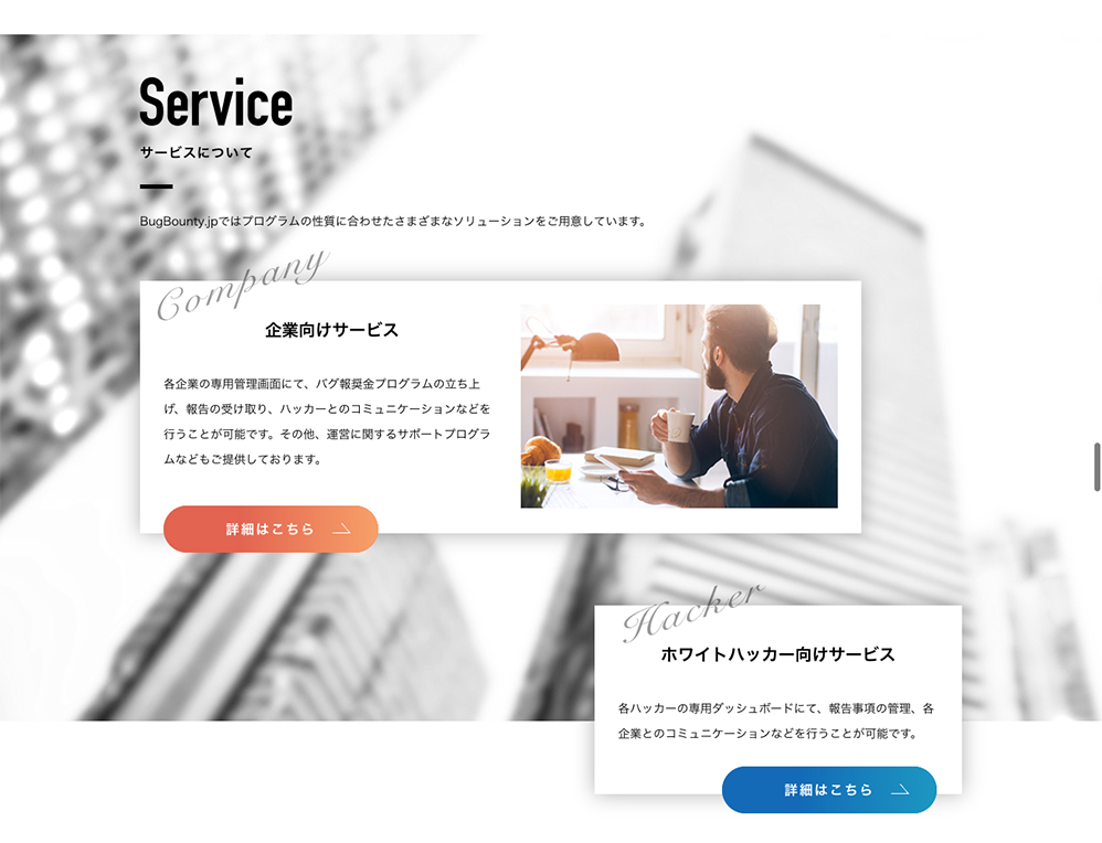 サービスをより拡充させる為のサイトリニューアル案件。UIを刷新し、企業ユーザー、ホワイトハッカーユーザー、いずれのユーザーにおいてもサービスの理解がしやすく、また、マッチング率を高める情報設計を中心にリデザインを行い、一部デザインを担当しました。
