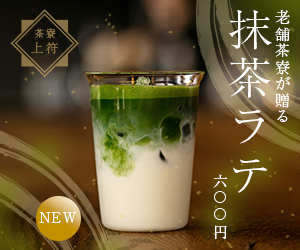 ・店舗名は、和風のフレームに収めて、商品の周りにも和の装飾を施して、新しく登場した抹茶ラテでも高級感は感じられるようにしました。