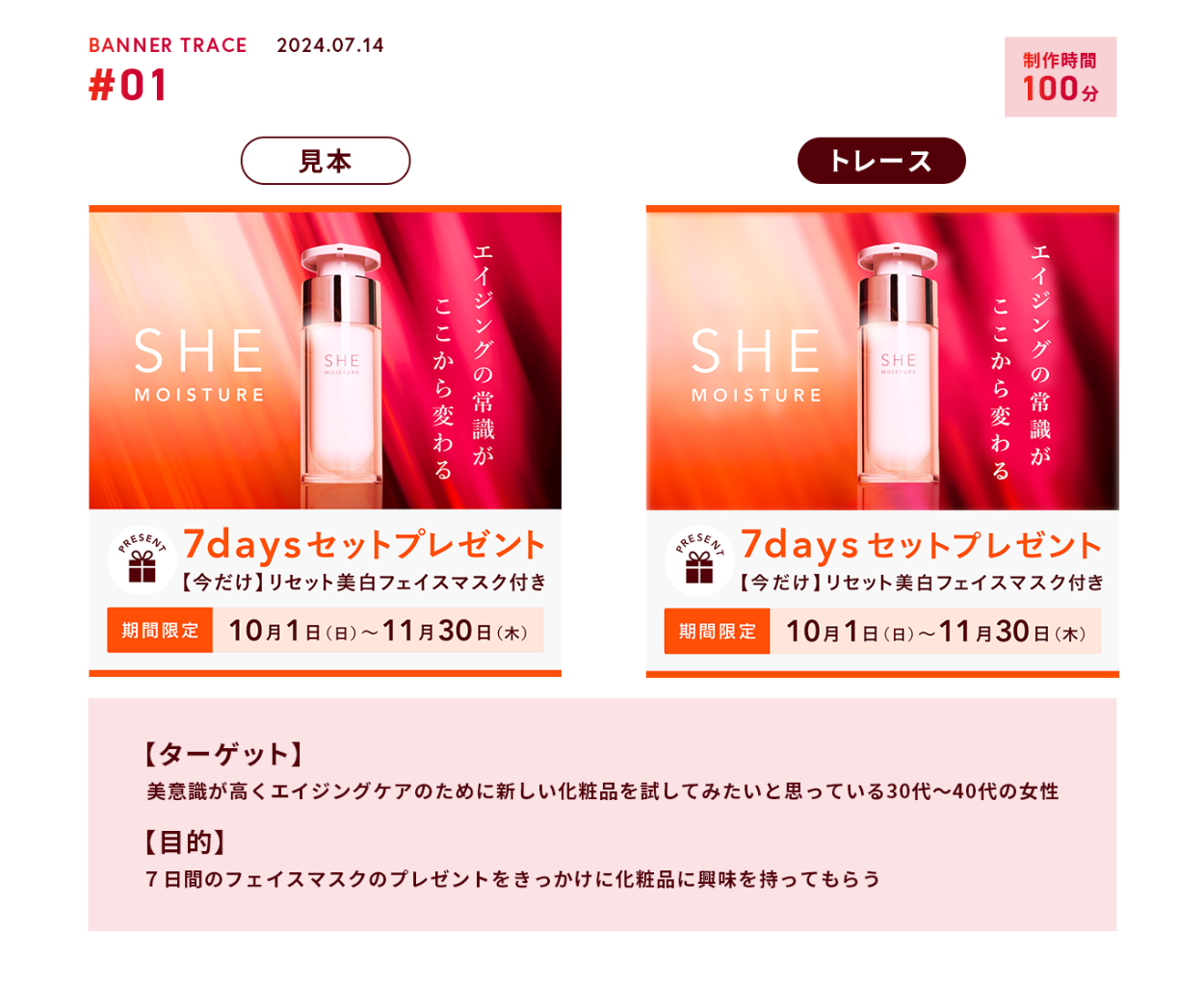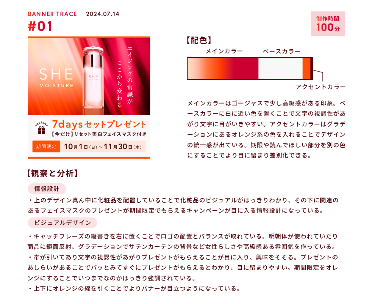 ⚫︎SHElikes MULTI CREATOR COURSEでの課題制作 バナートレース/バナーの観察・分析/資料としてまとめる 制作期間:1週間