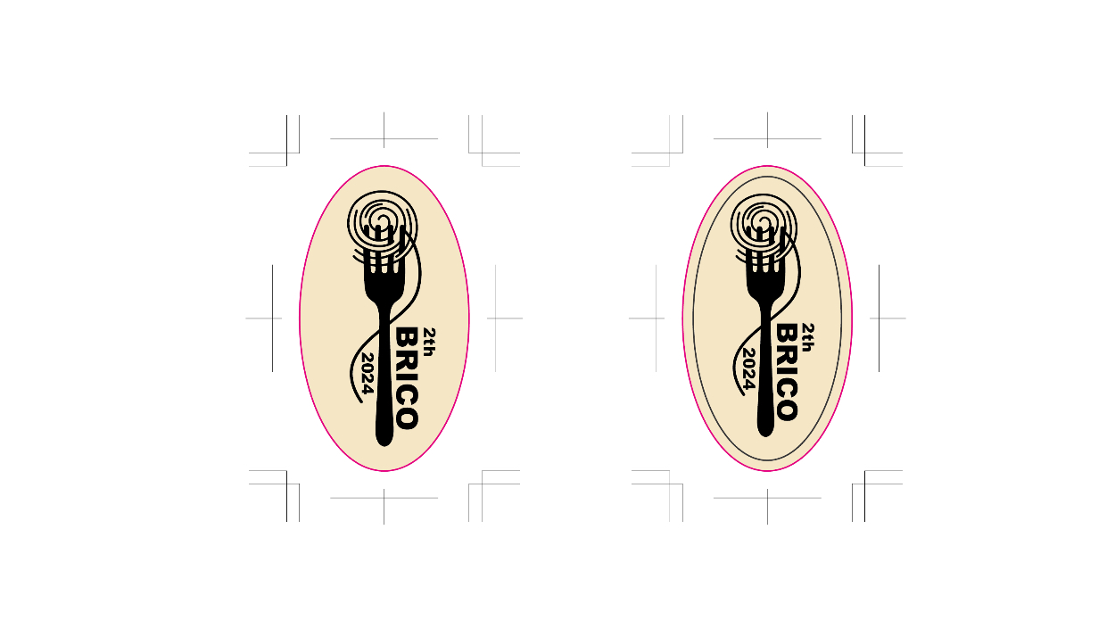 元々のロゴがかわいいので、名刺のように四角にするよりか楕円の方が