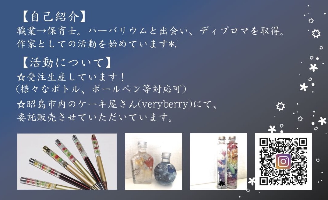 保育士をしながらハーバリウムをしている作家さんの名刺です。