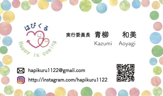 のぼり旗で使用した水彩画タッチの水玉を気に入っていただき、名刺の背景にも使用。
