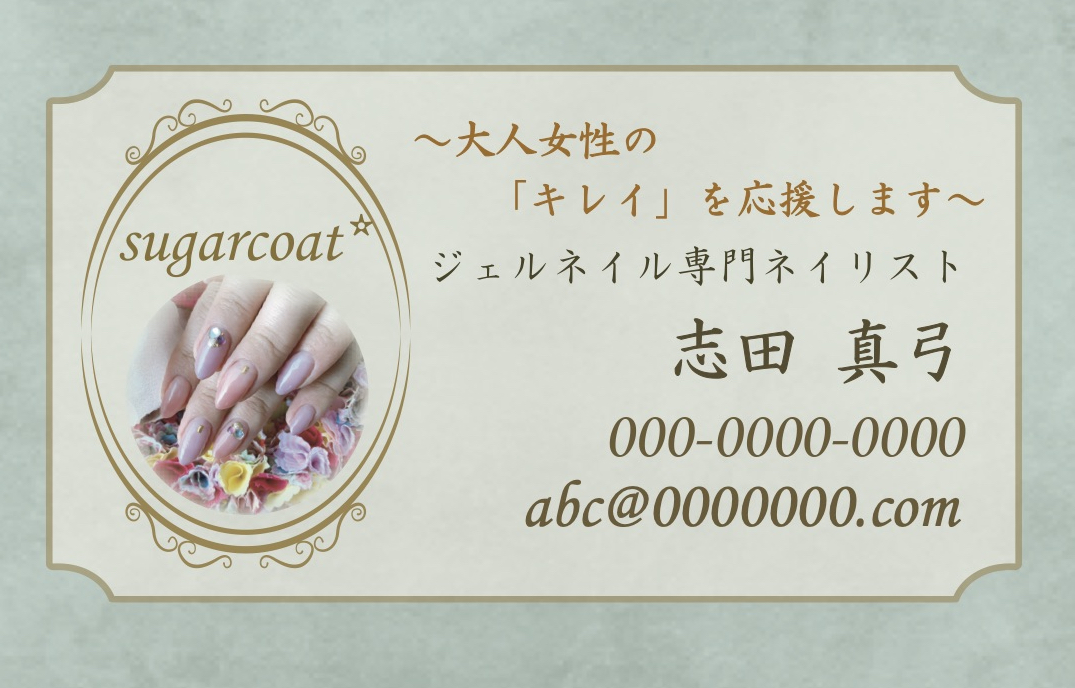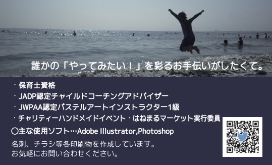 チョークアートのスタジオを複数店舗展開され、カルチャースクール等でもレッスンを行っている方の名刺です。店舗の看板等も手掛けられています。