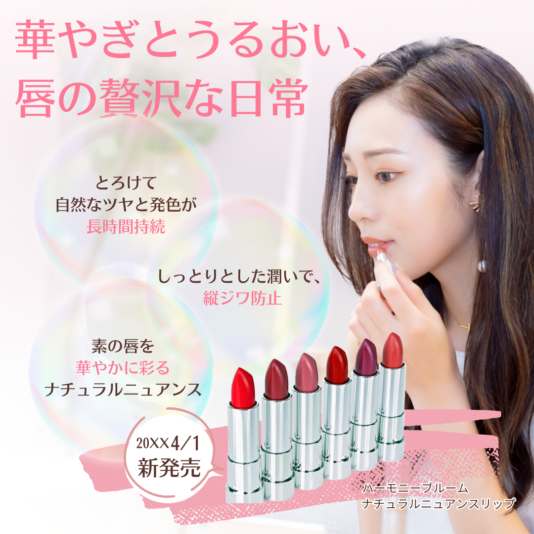 ・キャッチコピー「華やぎと潤い、唇の贅沢な日常」をいれてほしい