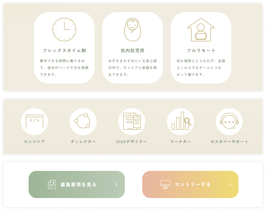→ ページ全体に動きを持たせ、飽きさせない工夫