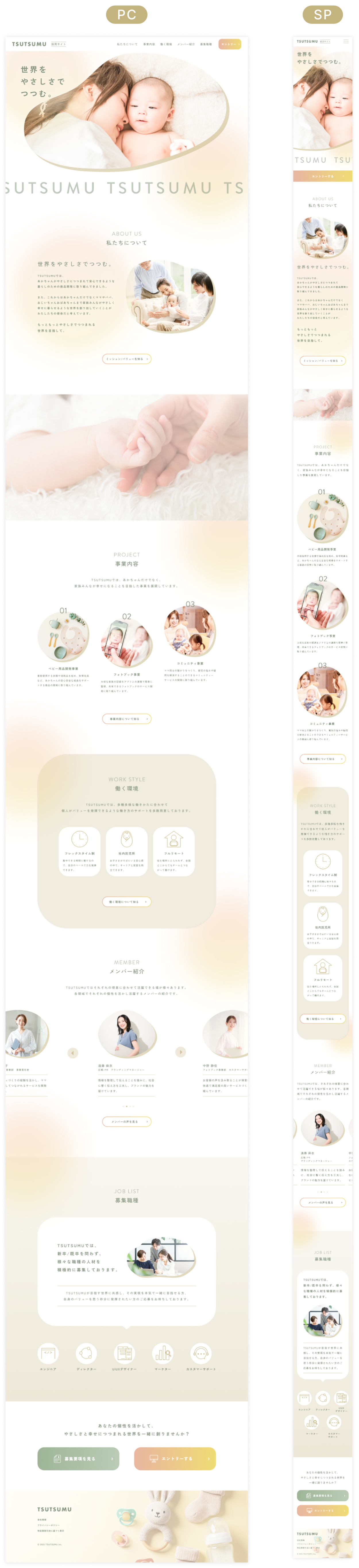 SHElikes PROデザイナーの課題にて、ベビー用品会社の採用サイトを制作。 クライアントからの要件書をもとに、FigmaでPC/SPのワイヤーフレームとデザインカンプを作成し、コーディング(HTML/CSS/JavaScript)から公開まで行いました。 制作期間:約2週間