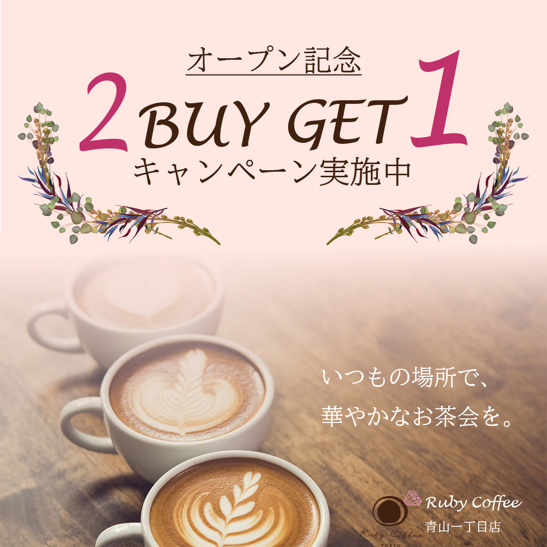 コーヒーを2杯購入すると1杯無料になるキャンペーンのバナー。