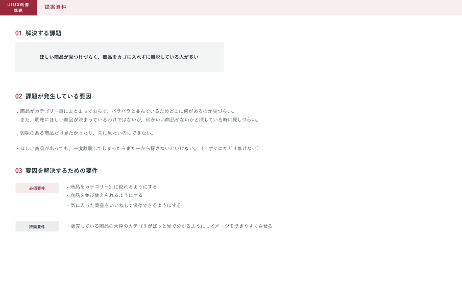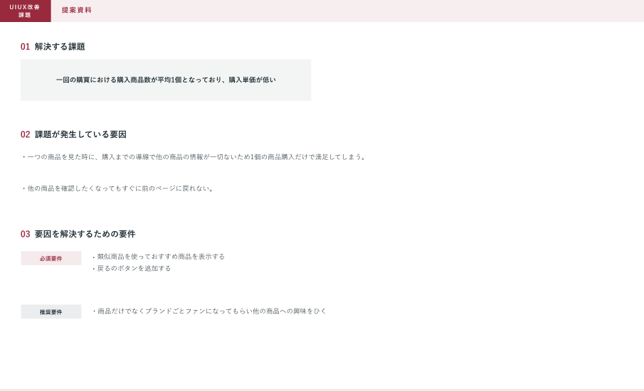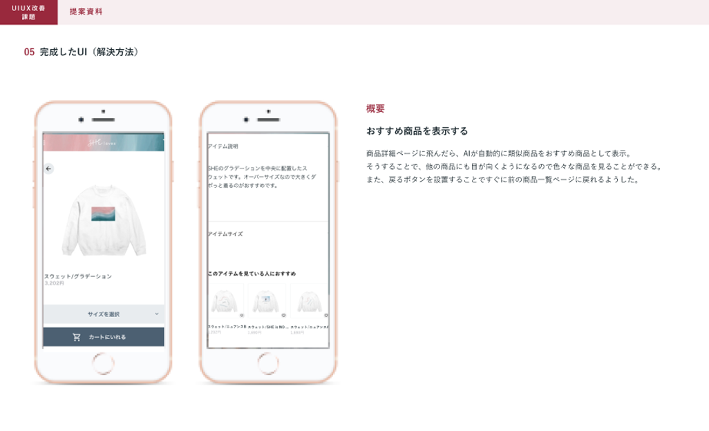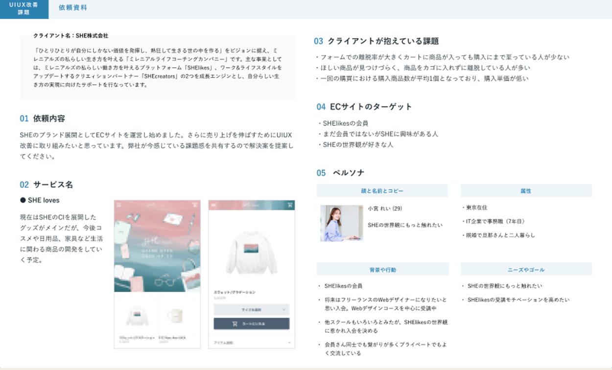 SHElikes MULTI CREATOR COURSE でUI/UX改善の課題に取り組みました。架空のクライアントからの依頼を元に、ECサイトのUI/UX改善の提案資料を作成しました。