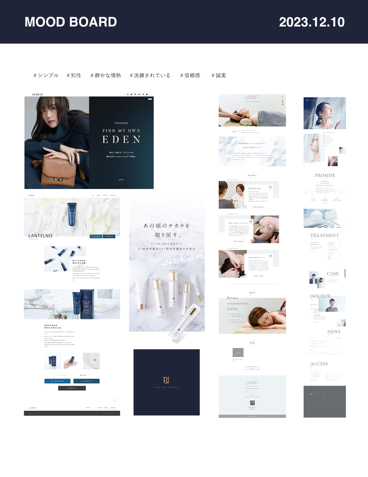 ムードボートを見せながら視覚的にイメージをすり合わせることで、「洗練されている」「清潔感」などサイト作成で重要なイメージを固め、サイト制作をスムーズに進めることができました。事前にクライアントと密にコミュニケーションをとることの重要性を学んだ機会だったと感じています。