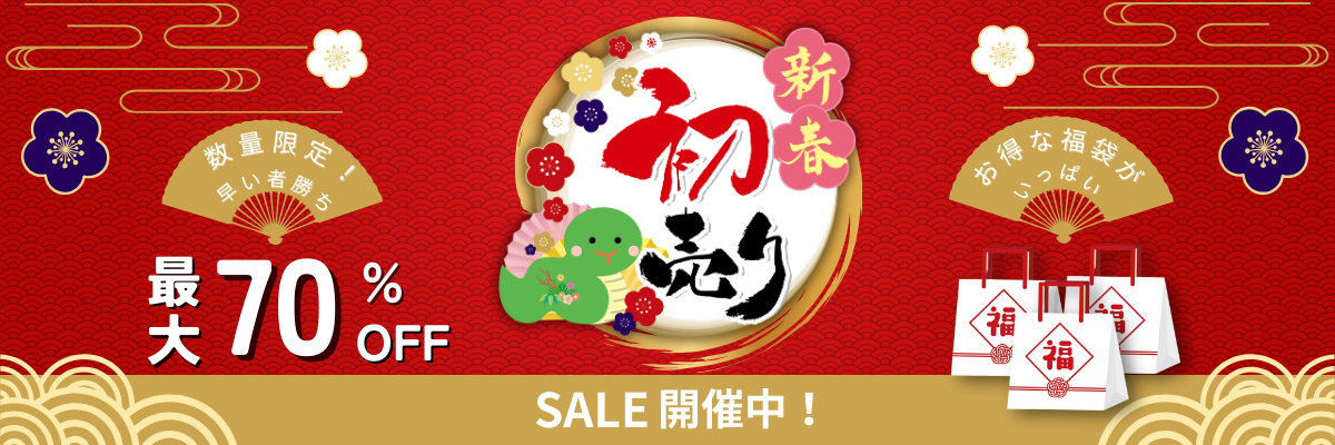 ・これらのモチーフを組み合わせることで、正月セールの雰囲気を強調。