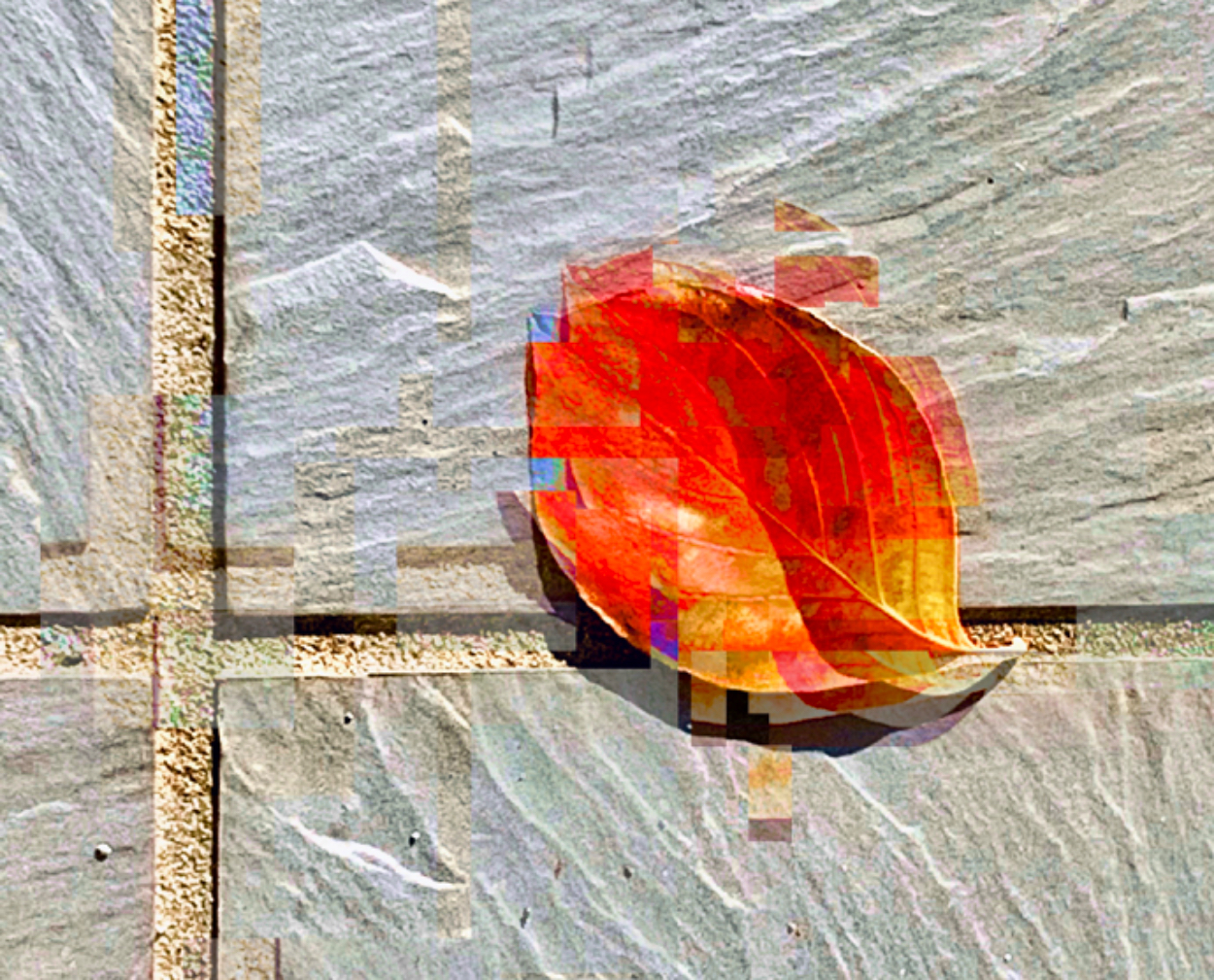 実家の玄関口にハナミズキの葉が赤く色付き落ちているのを見つけ作品を制作する上での資料にするため撮影したものを作品にしました。