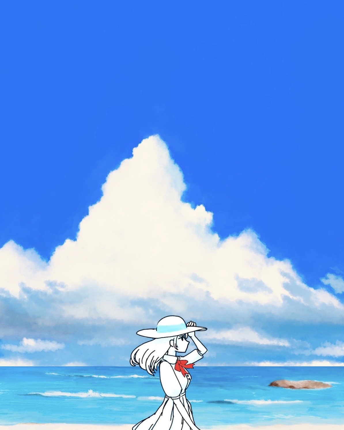 大学卒業後、社会人として大学祭に出展した作品になります。山陰地方島根県の8月の海を在学時に撮影し、それを参考資料にして背景の海と入道雲を描きました。2019,8作成。