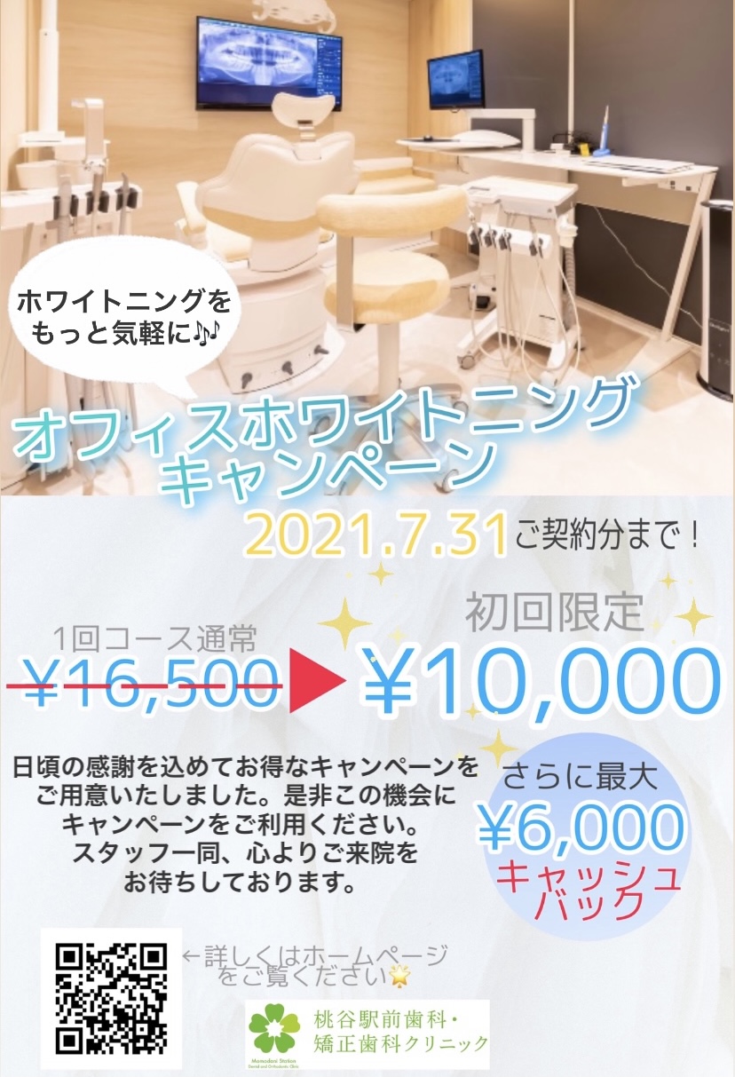 弊医院(桃谷駅前歯科・矯正歯科クリニック)▶︎駅から徒歩1分の所に位置する矯正歯科。患者様の要望にただ応えるのではなく、患者様と患者様の歯を長く健康に保つことを目的とした治療と丁寧なカウンセリングを得意としている。新しいホワイトニングシステムを導入したばかりなので、症例数を増やしたいと思っている。