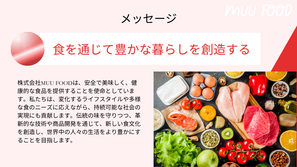 ・想定クライアント様など:この食品会社との取引を考えている会社担当者。