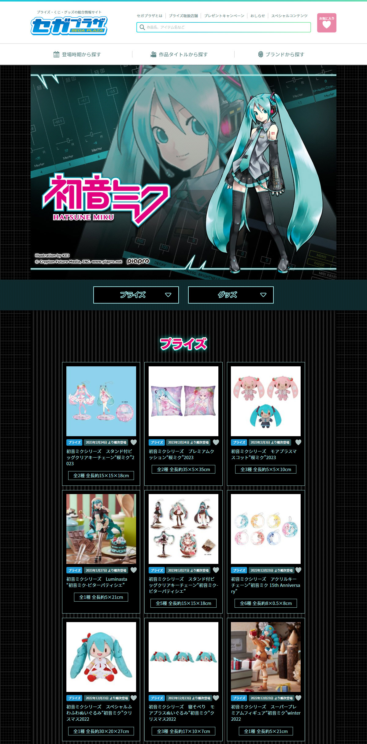 セガのプライズ(アミューズメント専用景品)やキャラクターくじ「セガ ラッキーくじ」などの情報をお届けする、月間ユーザー数80万人の大規模サイトです。