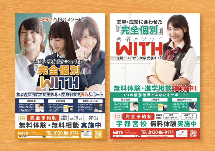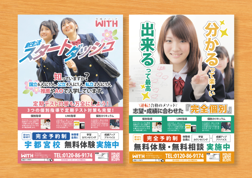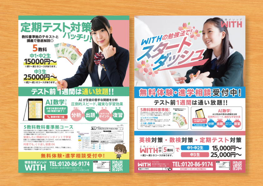 合格メソッドWITH様 塾チラシの作成(8案) shima デザイナー OVERVIEW 合格メソッドWITH様の広告チラシを作成致しました。 YEAR 2020 制作時期:2020年2月制作期間:1枚2日ほど