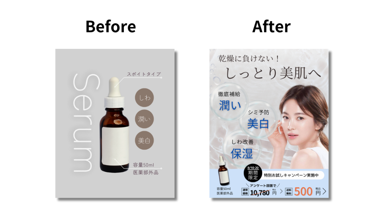 ・美容液の透明感を感じられるように、トンマナは青・水色を使用