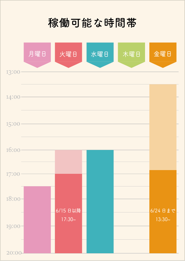 現在稼働可能な時間帯を描きました。