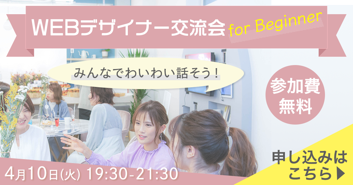 ・Z型の視線の動きを意識し、参加者同士で交流できる・みんなでわいわいという伝えたい部分を上・中心に、 次に優先度が高いと思った参加費無料をその右にし、左下で日付、右下に申込への誘導となるようにしました。 ・初心者向けであるということがわかるように、for Beginnerも目立つようにタイトルのWebデザイン交流会とは別の形にしました。 ・申し込みはクリックで誘導されるのが分かるように三角をつけました。 ・みんなでわいわいは写真の補足としての位置づけになるよう話している人たちの上に配置しました。