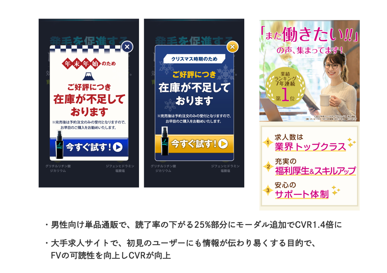 LP制作の他、A/Bテストでは 大手人材会社・大手クリニック・大手アパレル等を担当しております