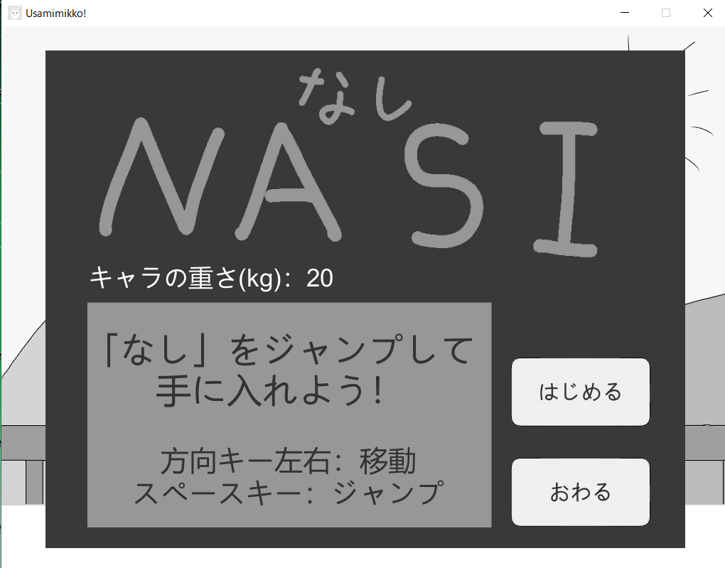 上から降ってくる梨を、キャラクターを操作してキャッチするというシンプルなミニゲームです。操作はシンプルですが、空中でキャッチする必要があるなど、難易度は少々高めになっており、短時間で遊べるゲームになっています。