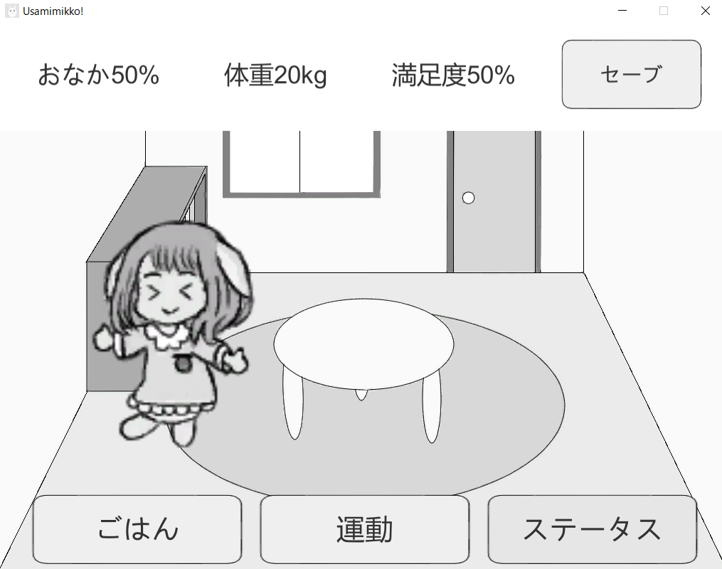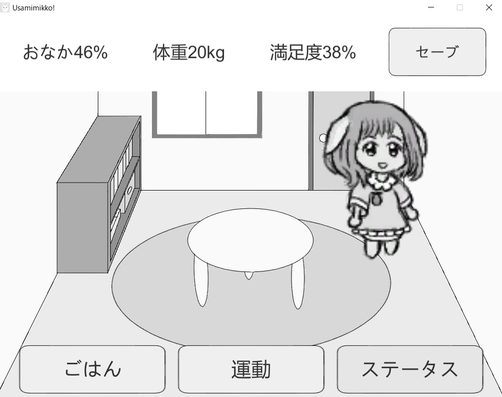 ・満足度:運動させたときの体重の減り具合が変化します。満足度が高いと一度の運動で多く体重が減少します。