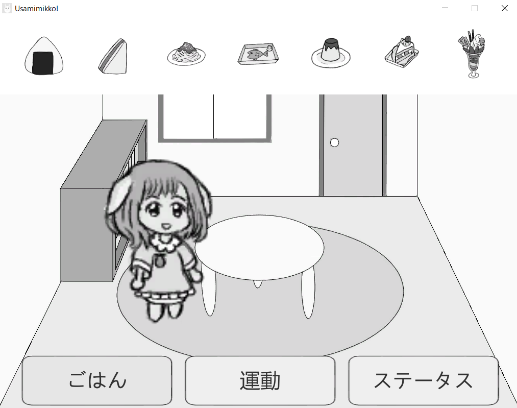 ・おなか:0%になるとゲームオーバーになります。ごはんをあげることで回復します。