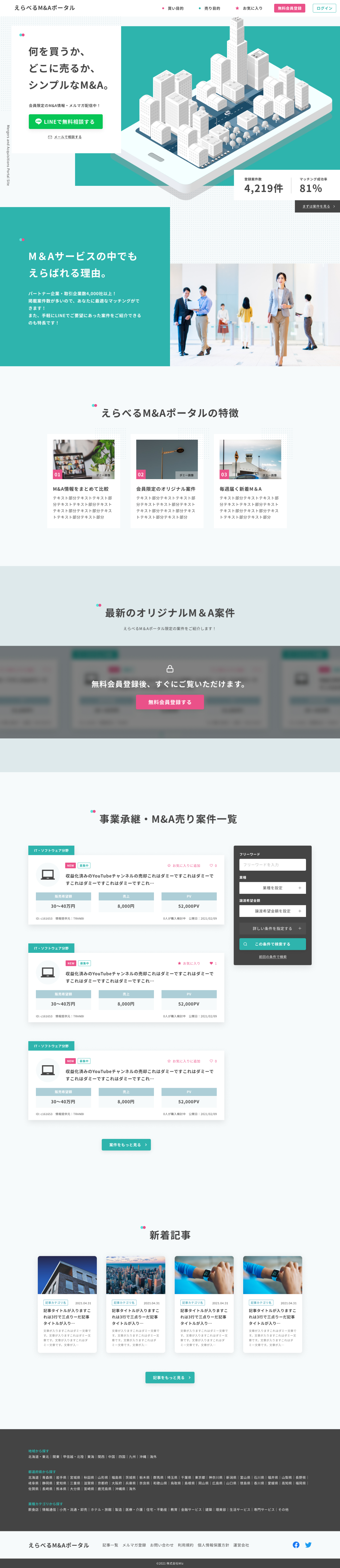 えらべるM&Aポータル koich ichimura webデザイナー OVERVIEW M&A(事業承継)マッチングサービスサイトの作成 YEAR 2021 - 2021 デザインコンセプトLPサービスサイト作成前に、前段階でLPをリリースしたいと打診されたため急遽作成したLP。ノーコードツール「studio」で自身が作成。リリース。https://ma.012grp.co.jp/サービスサイトデザイン作成後、予算の関係でリリースされずデザイン