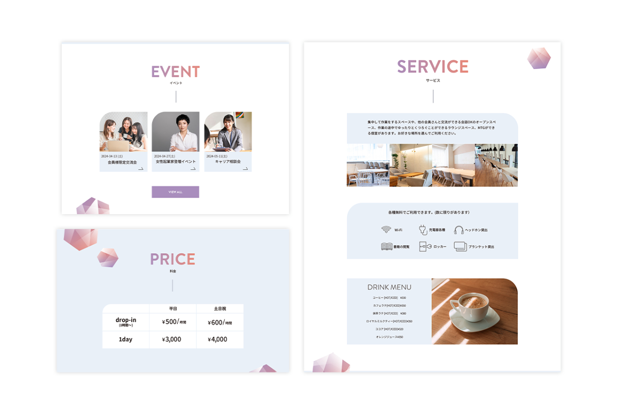 ペルソナのゴールや、イベントを開催しているというクライアントの情報から、イベントに関する情報のセクションを追加し、施設内のサービス情報や料金表といった、ユーザーが気になる内容が不足していると考え追加しました。ユーザーが離脱する前に重要な情報が目に入るように優先順位を考えセクションを並べ替えました。