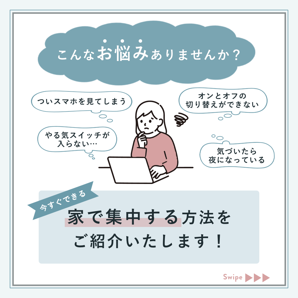ミレニアムライフコーチングカンパニーであるSHE株式会社様のSHElikes公式InstagramおよびTwitterで投稿するSNSバナーを制作しました。 『今こそ知りたい!自宅で集中する方法』をテーマに、企画立案からデザイン(バナー制作)まで行いました。