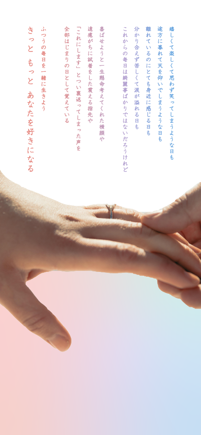ジェンダーを意識 (必ずしも男女ペアの指輪とは限らず多様性を大事に)