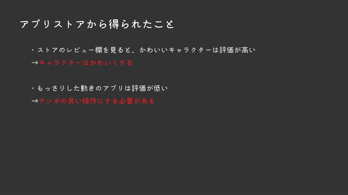 ゲームジャンルの調査、前回作ったものをリリースしてみての気づきなどをふまえて、今回制作に取り掛かりました。