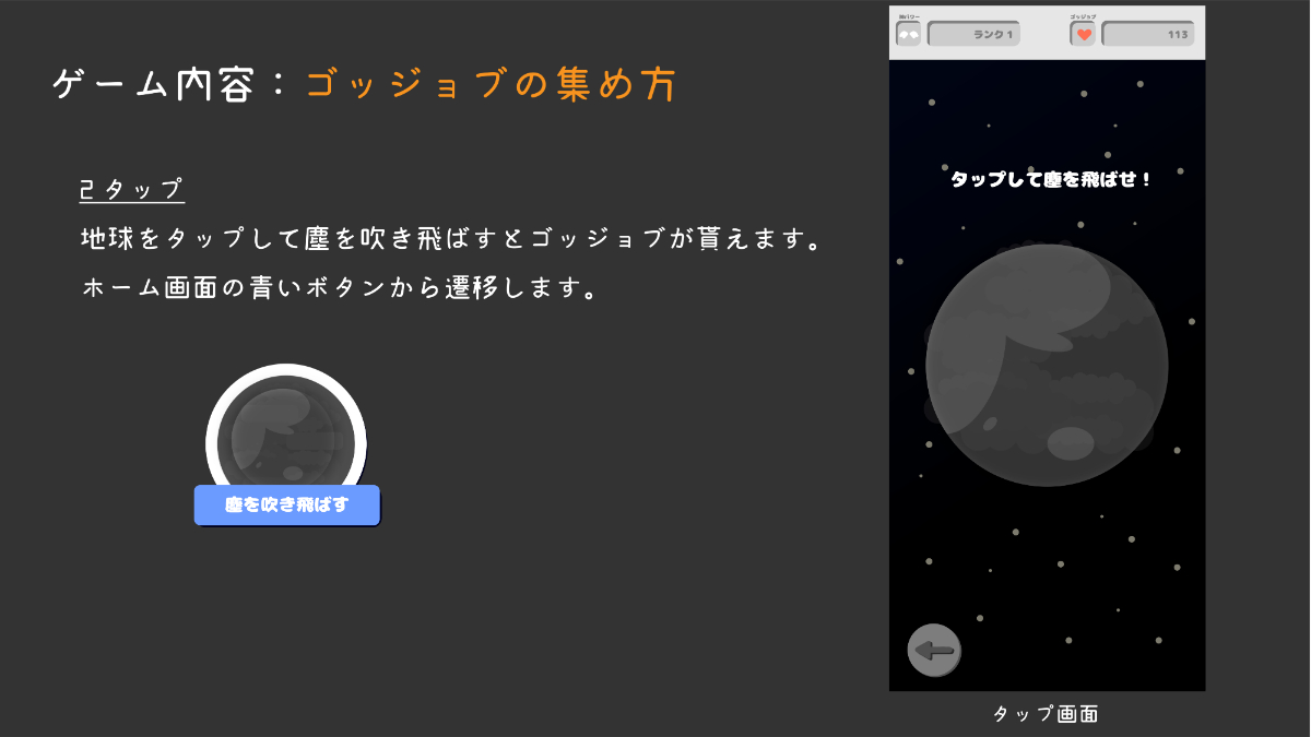 プレイヤーは地球を観測する神なので、その雰囲気を出すために神殿風のUIデザインにしました。