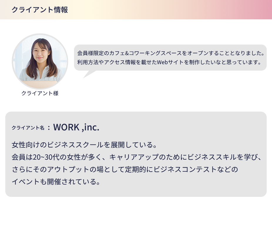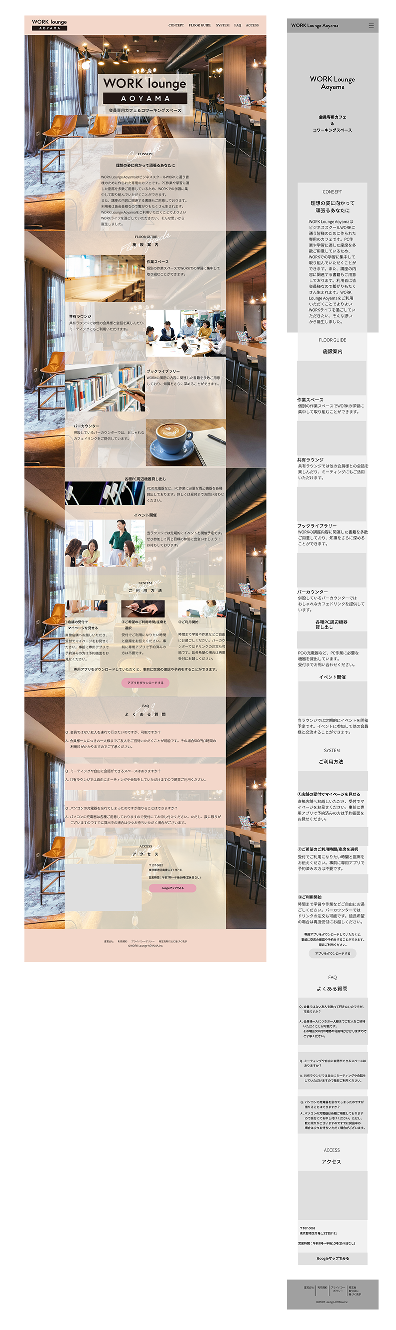 SHElikes MULTI CREATOR COURSEの課題で、会員制コワーキングスペースのLP制作に取組みました。クライアントからの要件書とワイヤーフレームを元に、PCのデザインカンプとSPのワイヤーフレームを制作しました。