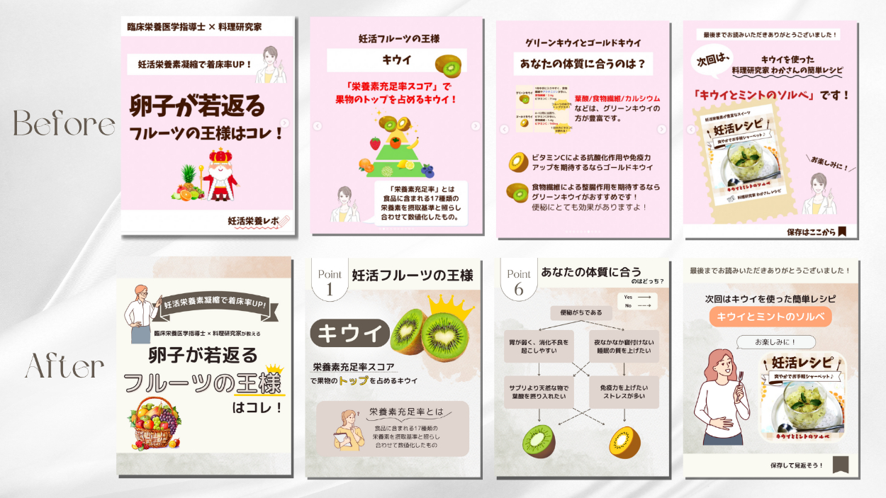 インスタグラムに投稿されているものを、 内容そのままにデザインのみオリジナルで作成する課題です。 今回は妊活について発信されている方の投稿です。