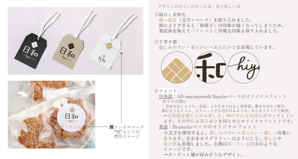 ロゴはブランドを象徴するものです。顧客にブランドのイメージをつける大事な要素のひとつです。そのため、パッケージや他の商品等に展開しているかを考えデザインしました。モックアップでシールのご提案をしたところ気に入ってくださり、実際に使用していただいています。