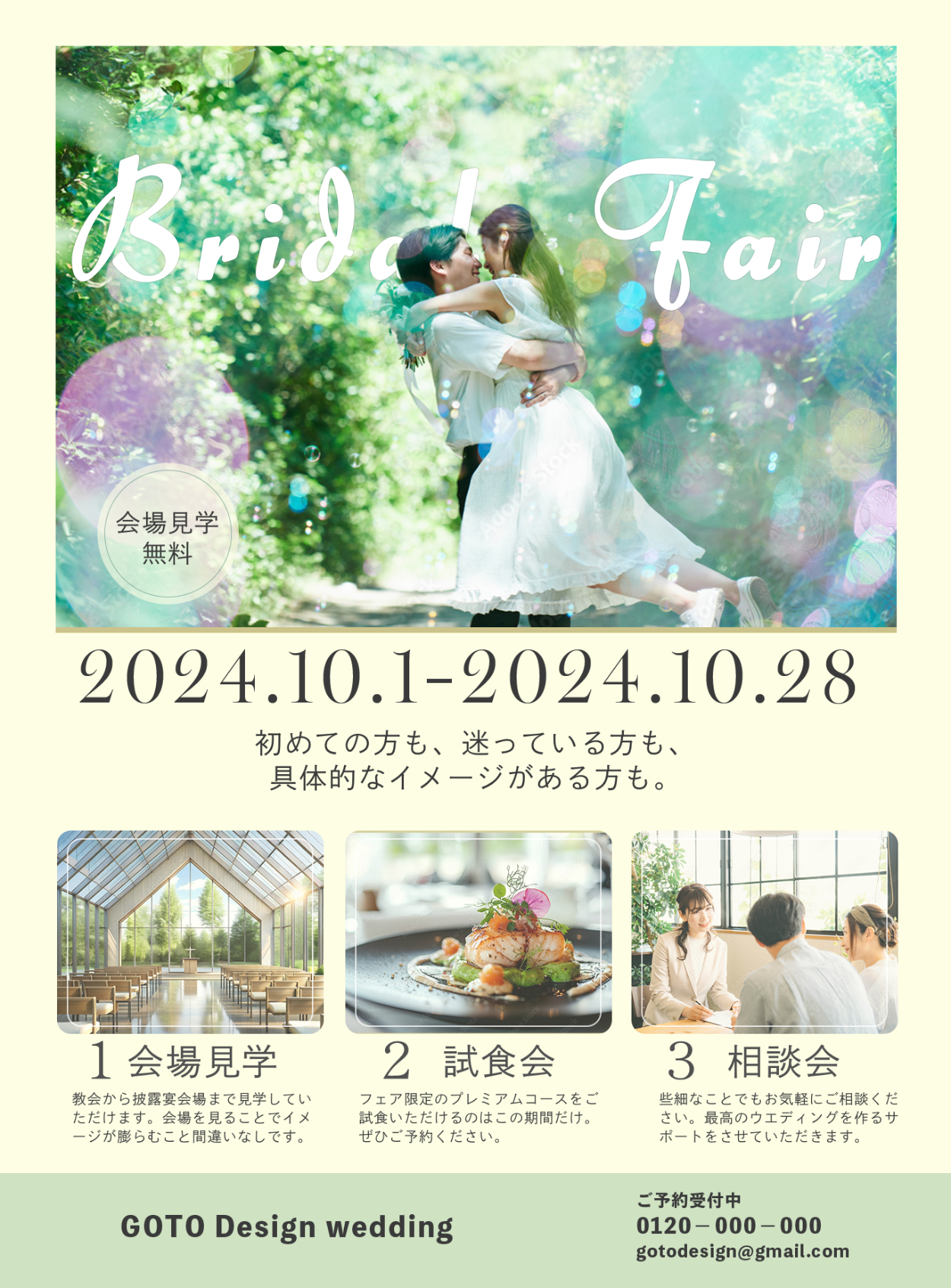 目的:結婚式を検討している方、結婚を考えている方へ会場へのお誘い