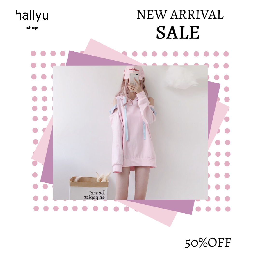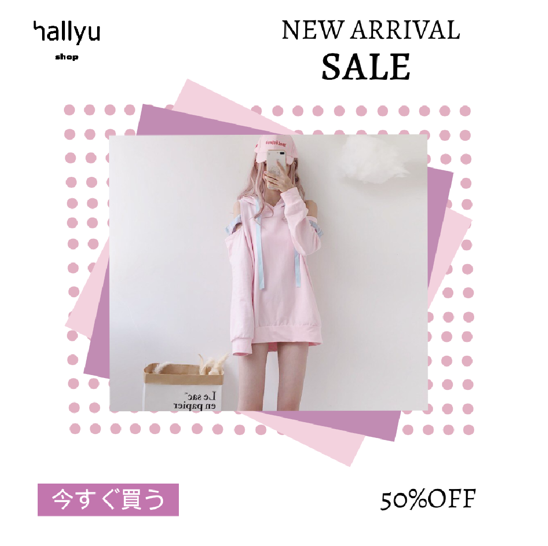 🎀バナーの目的は、新入荷やセールを宣伝することです。 選択した服の写真はピンク色なので、バナーの色はこの写真と一致します。