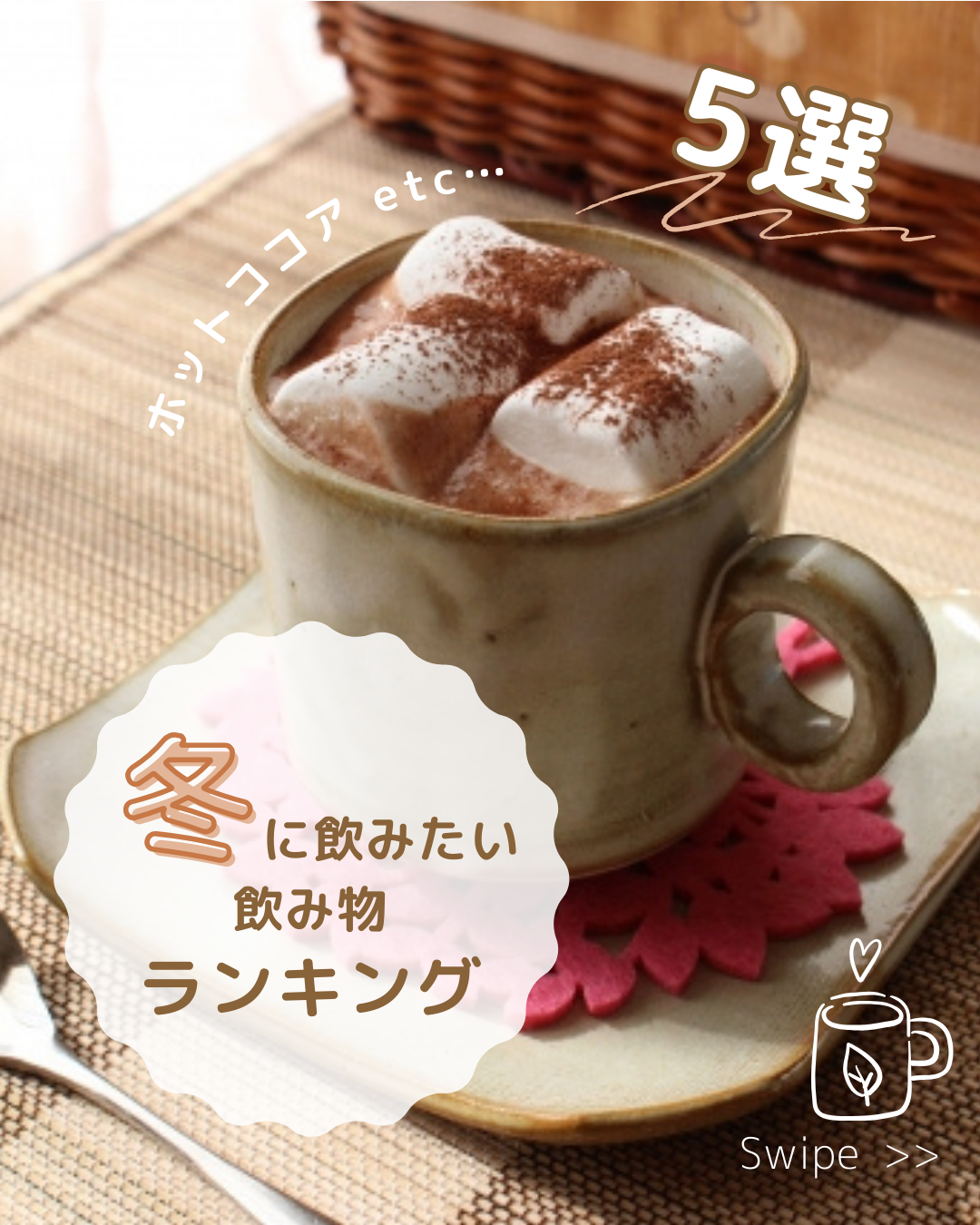 ・冬に飲みたい飲み物ランキング5選(フィード投稿サムネイルデザイン)