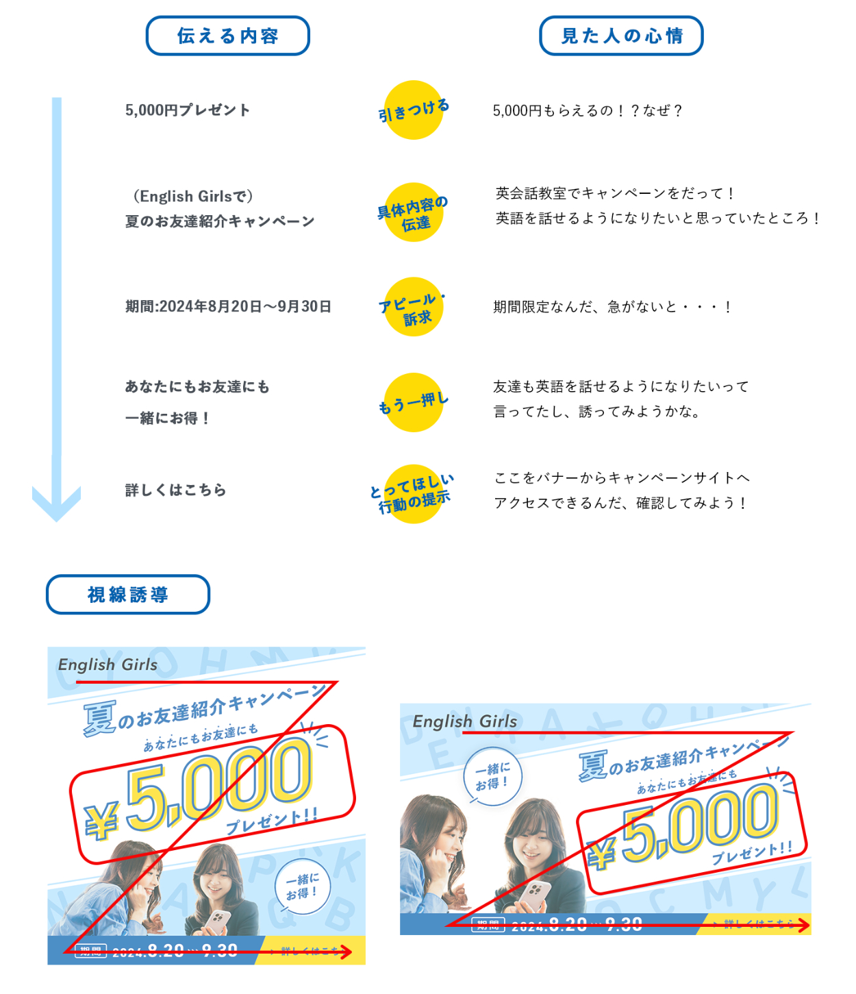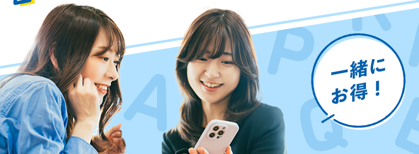 - 写真はスマホで英会話教室のキャンペーン情報を見ながら、友達を誘っている様子をイメージできるものを選びました。写真のように友達を誘って気軽に来てほしいというメッセージを込めています。
