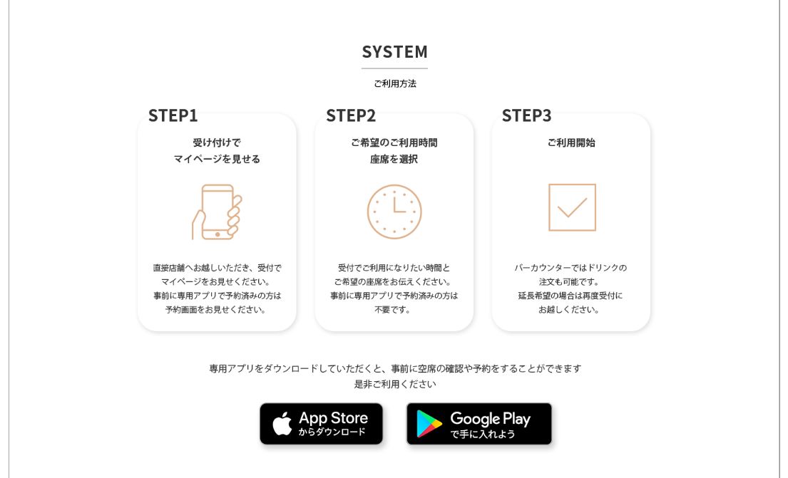 「基本サービス」と「システム」のセクションでイラストを挿入しました。文章と合わせることで、読んでもらう人が理解しやすくなることを心掛けました。また目的である、アプリをダウンロードしてもらうため、アプリダウンロードのボタンを配置しました。