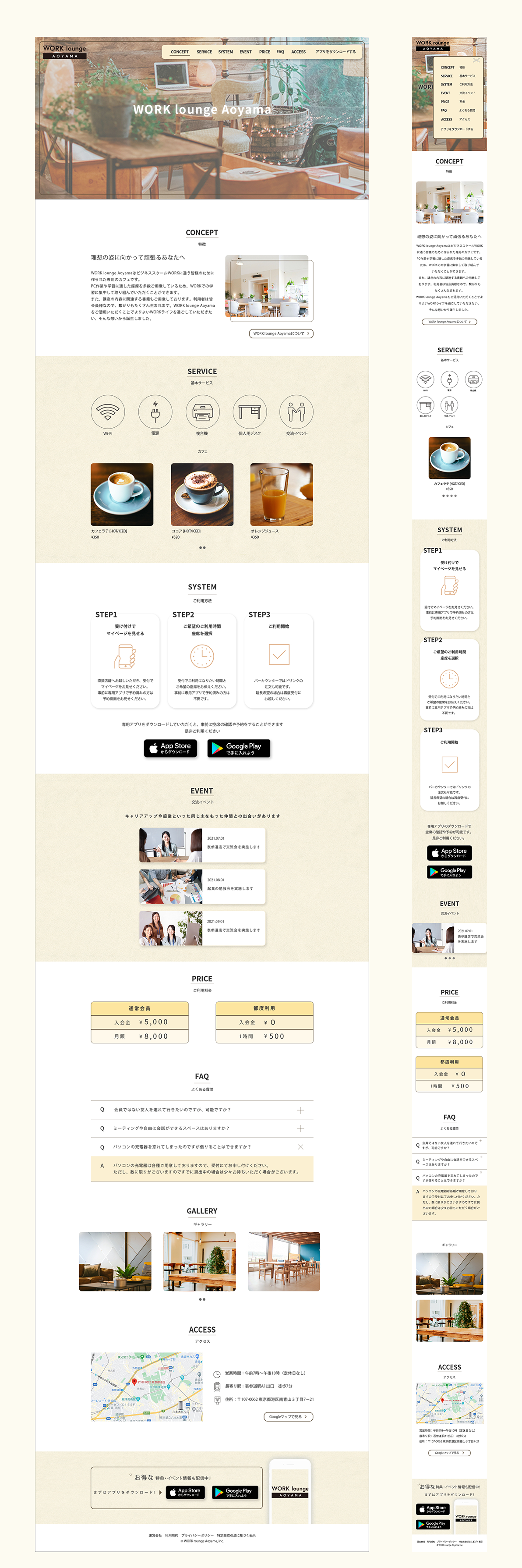 クライアントからの目的はWork lounge Aoyamaを知ってもらうことでしたが、知ってもらい、さらにアプリをダウンロードしてもらうところまでを今回は目的にデザインを制作しました。