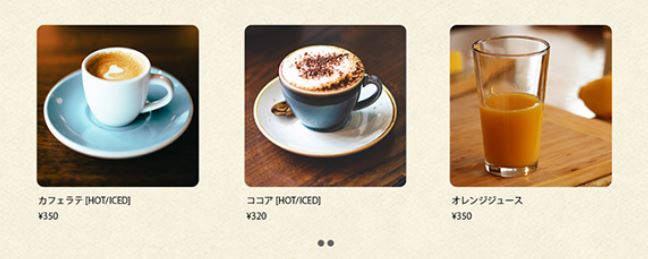 ドリンクメニューは重要度が低いと判断しました。ワイヤーフレームを変更し、スライドで見せることにしました。